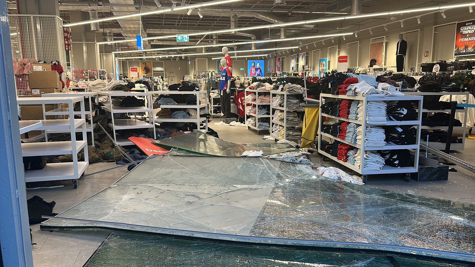 La imagen más impactante del día se ha producido en el centro comercial Jaén Plaza. Las rachas huracanadas han logrado reventar las grandes cristaleras de la tienda Primark, dejando el interior del establecimiento totalmente expuesto a los elementos. El mobiliario y la mercancía han quedado a merced de la tormenta en una estampa que ha corrido como la pólvora por redes sociales.